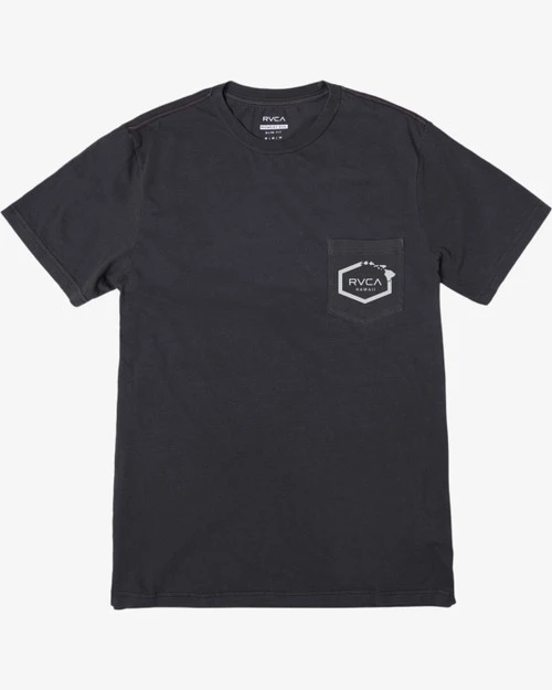 Infused with understated vibes, the RVCA Hawaii Island Hex Pocket Tee has you covered. Made from pigment dyed jersey, this Andrew Prommier exclusive tee features custom graphics at the chest pocket, short sleeves, a crew neckline, screened inside neck and signature Red Stitch.