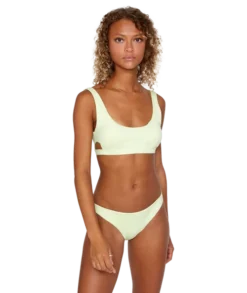 Time to upgrade your basics the solid medium bikini bottom takes a timeless style and elevates it with stretchy recycled nylon and fresh new colorways. This contemporary take on a lowrider features medium seat coverage a surf, swim, sun staple.